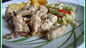 kuřecí řízky se špenátem,nivou a se zakysanou smetanou,