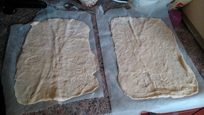 Krok 1: Rozválené těsto si dáme předpéct na 5 minut do trouby asi na 200°C.