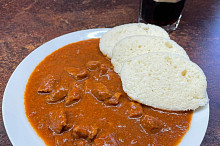gulas podle receptu (hovezi maso a misto protlaku Ragu),knedlik celozrny