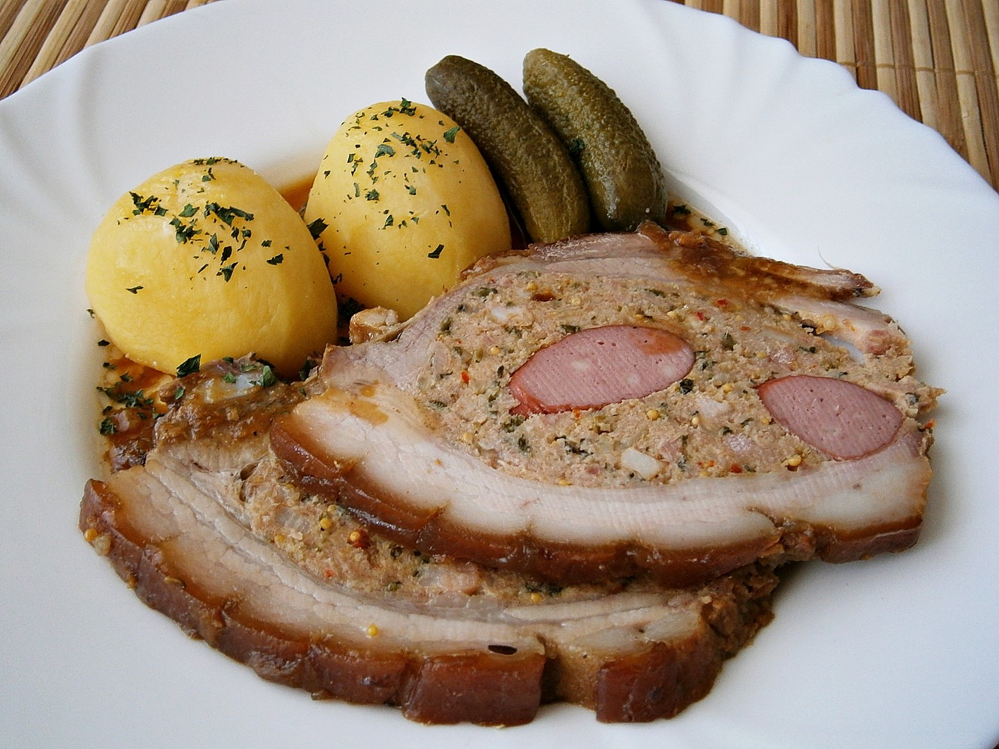 Krok 9: Po vytažení z trouby odstraníme nitě, bůček nařežeme na porce a podáváme jako hlavní chod například s brambory.