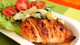 Nakládaný sýr s pečenými rajčátky a česnekem