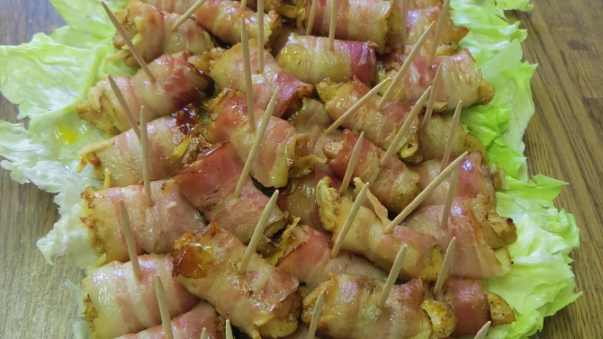 Gyrosové kuřecí kousky zabalené v anglické slanině