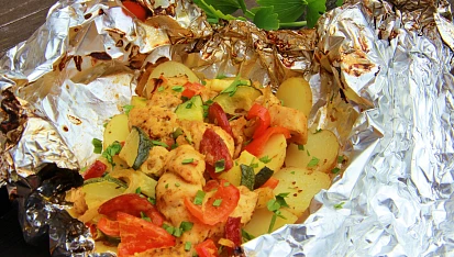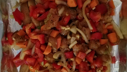 Cuketa na kari a česneku s nakládanou červenou paprikou