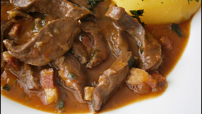 Vepřové srdíčko na zelenině ,připravené v papiňáku
