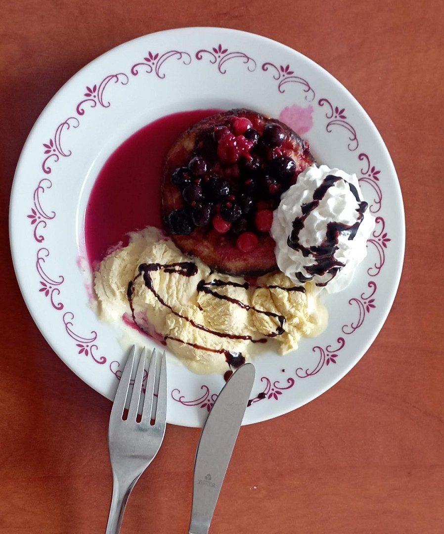 Lívance s omáčkou z lesního ovoce a se zmrzlinou