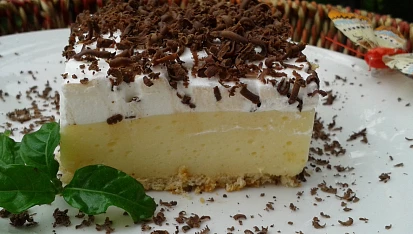 Lehounké nepečené řezy se vám rozplynou na jazyku. Pudinkový krém je odlehčený sněhem z bílků, díky čemuž má úžasnou strukturu, skoro jako pěna. Tento dezert máte hotový během chvilky a kromě krému na něj potřebujete jen sušenky a šlehačku.