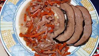 "Ovíněné" telecí srdce na zelenině v Pomalém hrnci