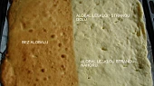 Krok 7: Vložím do trouby vyhřáté na 190°C a až těsto vyběhne, snížím teplotu asi na 160°C; nepřikrývám, peču „na oko“, záleží na množství těsta. Zkouším špejlí až nelepí.