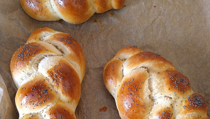 Krok 5: Plech vyložíme pečicím papírem, pletýnky přeneseme na plech, potřeme je rozšlehaným vejcem a posypeme mákem. Necháme je ještě chvíli kynout.