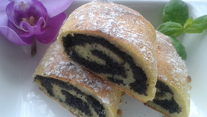 Krok 4: Každou část těsta rozválíme, jednu potřeme sladkou makovou náplní a druhou slanou, zelnou náplní. Smotáme, pomažeme vejcem a pečeme do růžova.