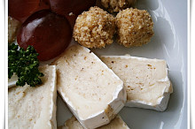Část použitých surovin.Sýry rozpůlíme,vydlabané vnitřky rozmixujeme s nivou,máslem a smetanou.