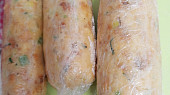 Krok 7: Délku knedlíku zvolíme podle velikosti průměru hrnce, ve kterém se budou vařit. Po naplnění vytlačíme vzduch a zavážeme s rezervou přibližně 2 cm druhý konec. Knedlík totiž lehce zvětší svůj objem.