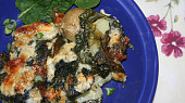 Ještě dodatek: recept je v podstatě dílem mého syna, tahle nějak si to nadiktoval a já jsem to jen realizovala podle jeho přání. Chtěl, abych tam zapekla i plátky rajčat, ale rajčata se mi tam moc nehodila, tak jsem mu je k tomu přiložila syrová.
