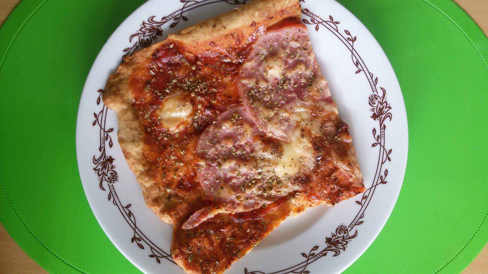 Krok 3: Na těsto pokládáme kolečka šunky a sýru.