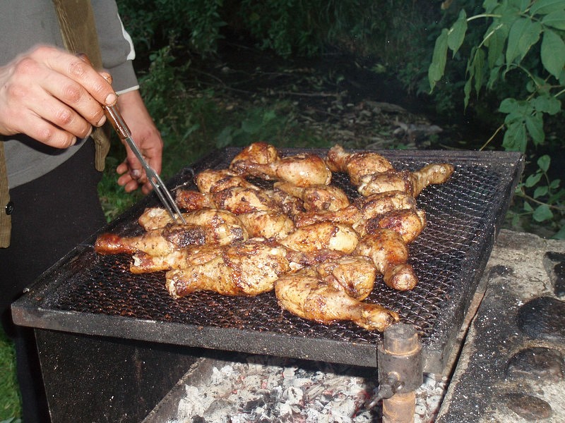 Krok 2: Grilujeme nad otevřeným ohněm, během grilování potíráme kořenící směsí.
