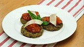 Brokolicové koláčky s ricottou a chia semínky s rajčatovým ragú