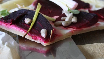 Ricottový koláč s červenou řepou a jarními cibulkami