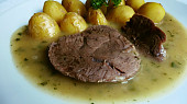 Pomalu vařená hovězí kližka s česnekovou omáčkou