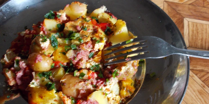 Rychlá večeře - Zapečené brambory se zeleninou a mletým masem
