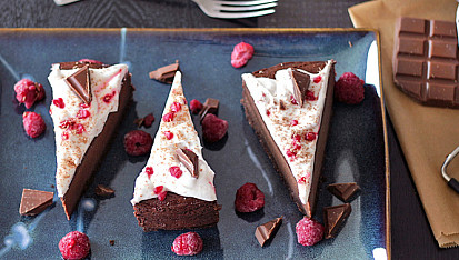 Tento vynikající čokoládový cheesecake připravíme bez živočišných produktů. Na náplň použijeme doma vyrobený sýr z kešu oříšků a vegan jogurtu, který necháme zakysat. Upečený a vychladlý cheesecake ozdobíme šlehačkou z kokosového mléka, čokoládou a ovocem.