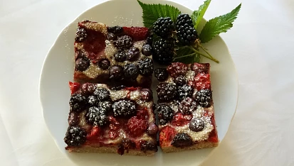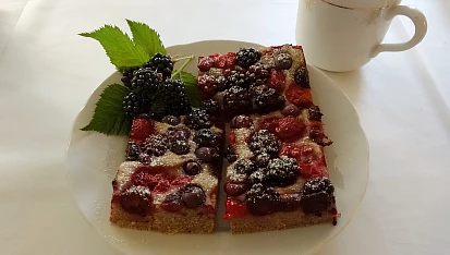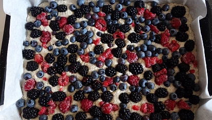 Koláč s lesními plody a šáchorem bez lepku, mléka a vajec