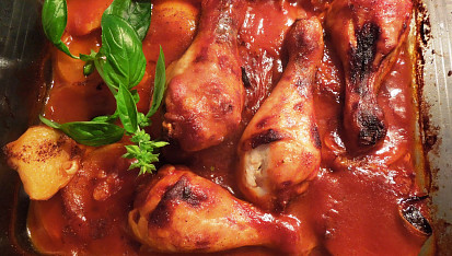 Krok 4: Pyré rozmiešame s trochou vody a zmesou zalejeme kurča. Vložíme zakryté späť do rúry a dopečieme. Pred koncom odkryjeme a necháme zapiecť dozlata.