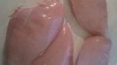 Krok 1: Kuřecí prsíčka lehce naklepeme, pomažeme hořčicí, mírně osolíme a opepříme. Každý plátek masa vložíme na alobal vymazaný olejem. Na prsíčka pak poklademe plátek slaniny, plátky pokrájených rajčat a strouhaný křen.