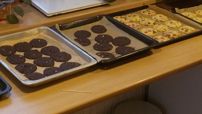 Krok 4: Troubu nastavíme na 190°C. Pečeme 10-15 minut (chceme, aby sušenky uprostřed byly měkké, jakoby trochu nedopečené, díky tomu budou pak hezky vláčné jako pravé americké cookies).