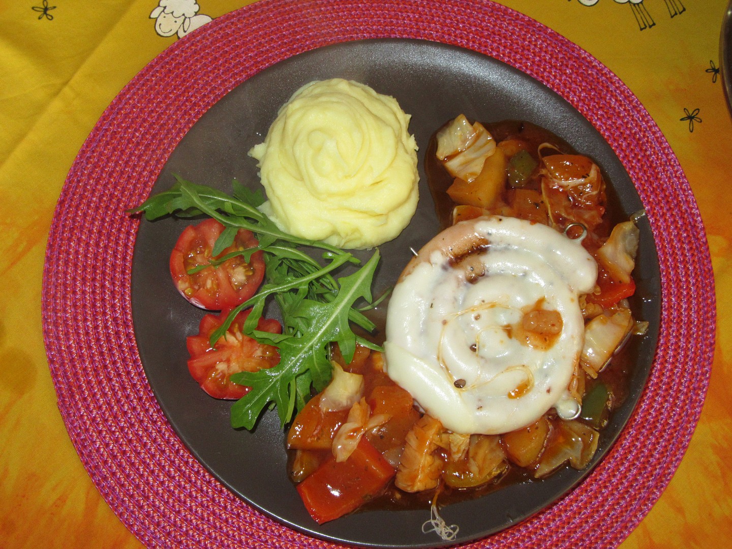 Bílá klobása na zeleninovém lůžku