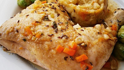 Kuřecí čtvrtky na zelenině, dušené v papiňáku