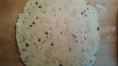Krok 1: Vše zpracujeme hnětačem, na vále dopracujeme rukou a přidáme ovoce a ořechy, jak kdo má rád (stačí po 50 g).