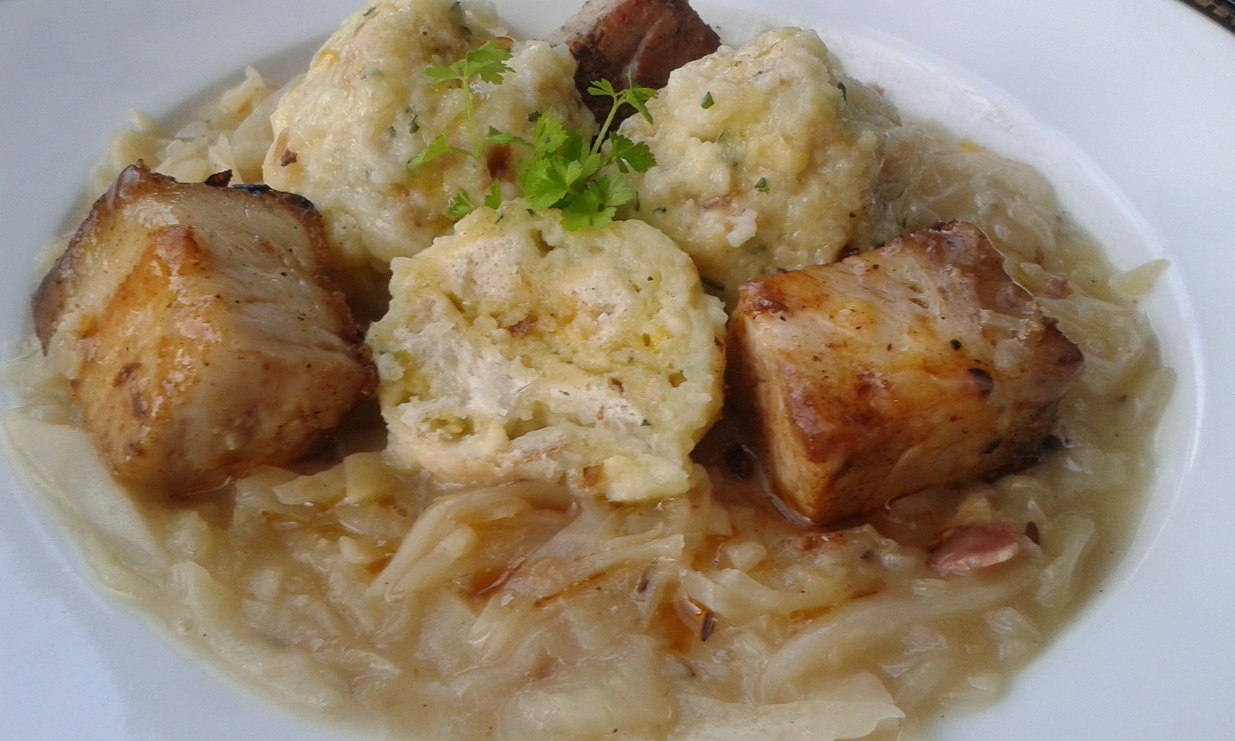 bramborový knedlíky s rohlikem,