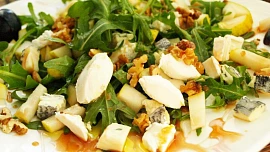Rukolový salát s rozpečeným kozím sýrem a medovou zálivkou