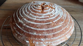 K tomu posypu hrubozrnnou solí - kdo chlebík nedojí v den upečení, měl by počítat s tím, že do druhého dne sůl na povrchu bochníků zvlhne a bude vlhká i kůrka kolem rozmočených krystalků.