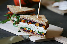 Kuřecí sendvič s karamelizovanou cibulí a pečenou dýní