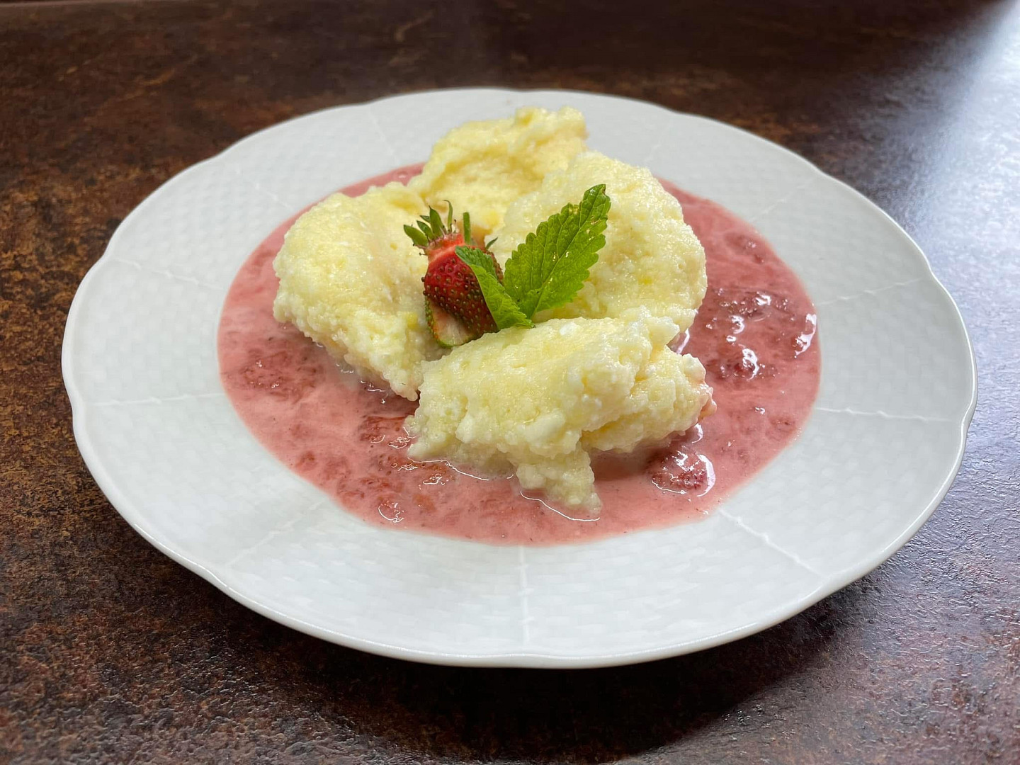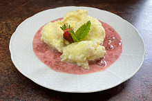 Krupicové noky s jahodovou omáčkou