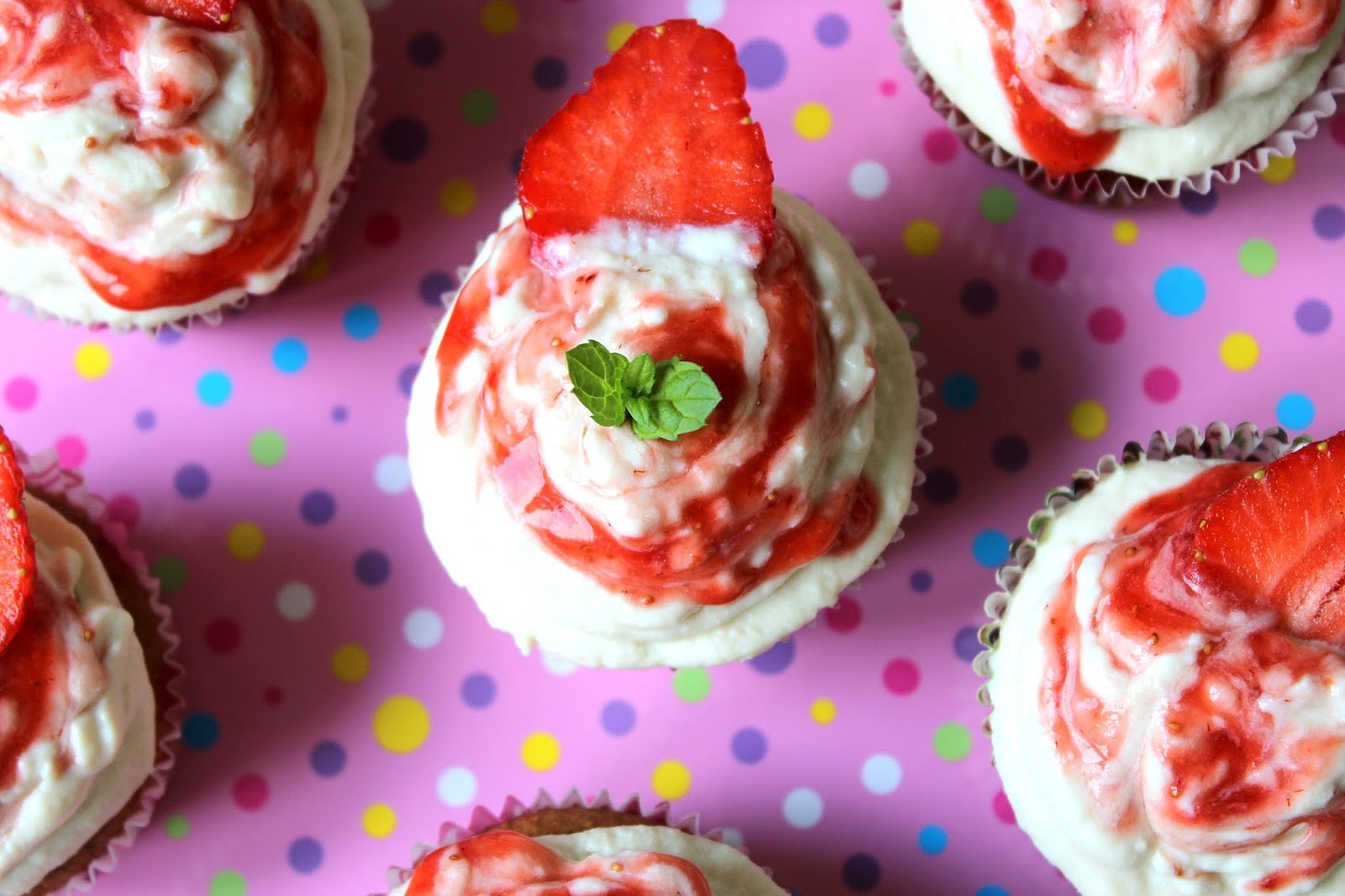 Chcete-li mlsat o trochu zdravější dobroty, vyzkoušejte cupcakes s ricotto-jogurtovým krémem. Kypré šťavnaté těsto korpusků s čepicí jemného krému a jahodovým pyré pohladí chuťové buňky a navíc jsou velmi hezké na pohled.