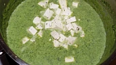 Krok 2: Potom vložíme natrhaný mangold (alebo špenát), zalejeme zvyšným mliekom a varíme ďalej 10 minút.
