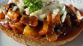 Masová směs na topinky je taková klasika. Co takhle ale zkusit odlehčenější variantu se žampiony? Je stejně tak výborná a skvěle se hodí jak na topinky, tak na bramboráky. Stačí zasypat strouhaným sýrem a dobrota k pivu je na světě.