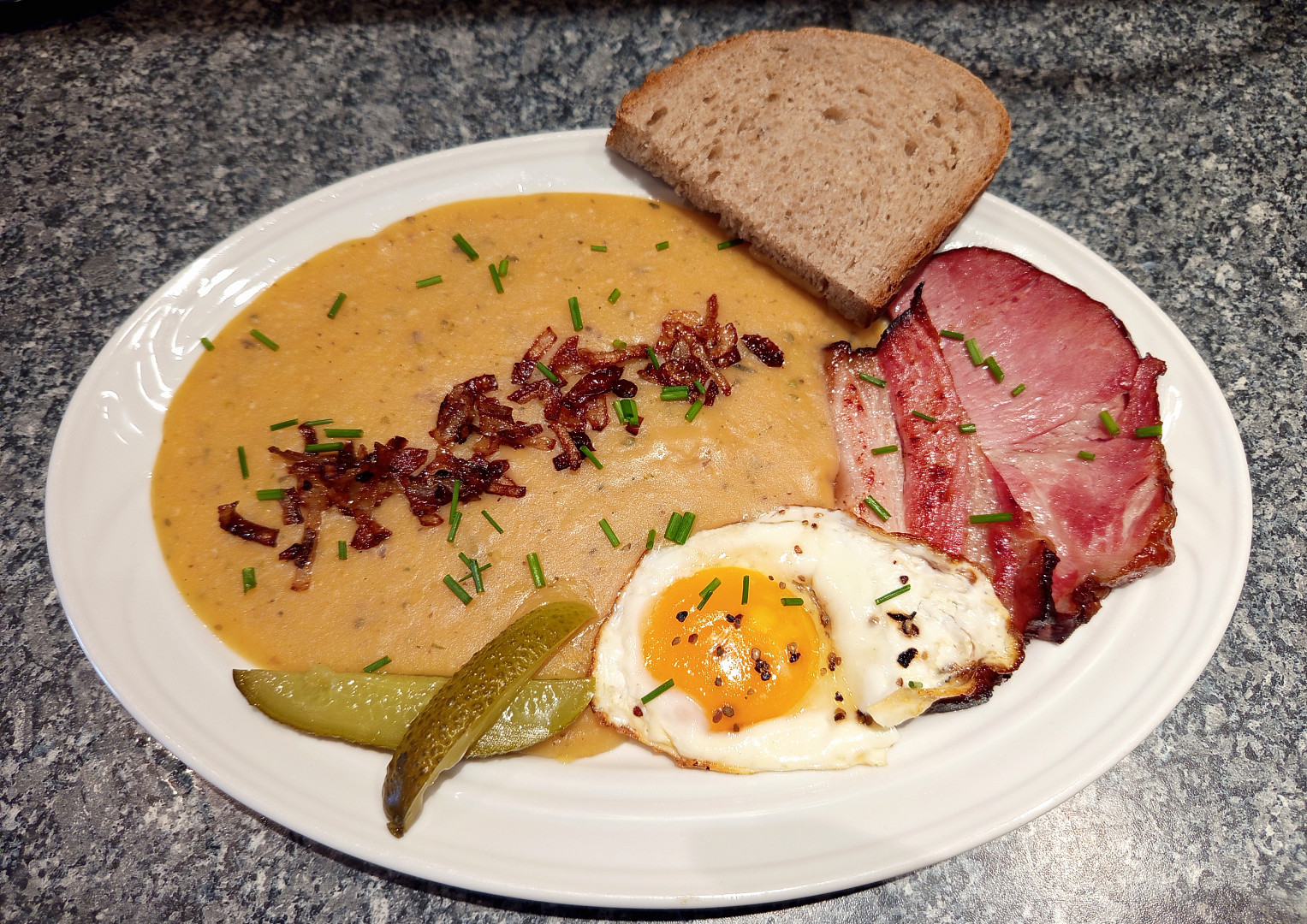 Hrachová kaše s uzenou krkovičkou