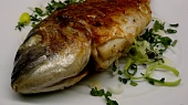 Krok 1: Čerstvou pražmu dobře omyjeme a důkladně, je-li to potřeba, vyčistíme břišní dutinu. Rybu následně osušíme. Z obou stran rybu na boku 3x až 4x šikmo nařízneme, dokud nám nůž nenarazí na žeberní kost.