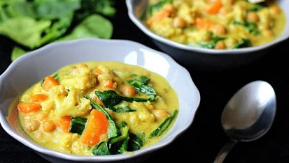 Máme-li náladu při vaření experimentovat a zkoušet netradiční kombinace chutí, můžeme se pustit do přípravy květákového kari. Směs zeleniny okořeníme výrazným kořením a zjemníme kokosovým mlékem. Podáváme ozdobené nasekanými čerstvými bylinkami.