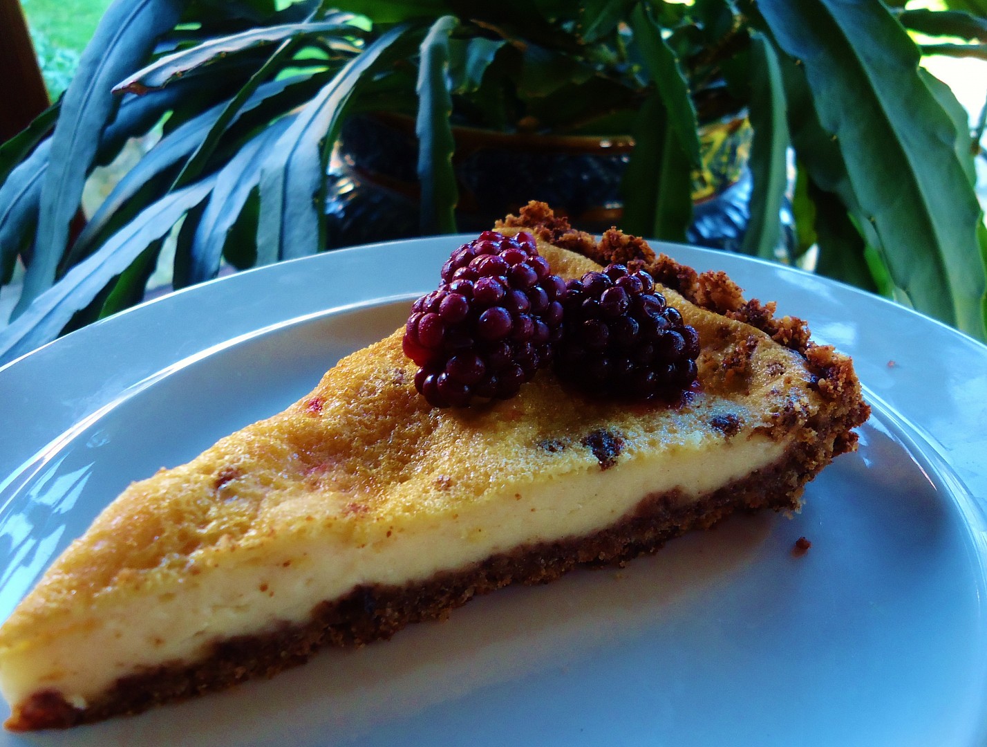 Krok 2: V míse či mixeru mezitím umixujte vejce, vanilkovou esenci, muškátový oříšek, máslo a podmáslí. Přidejte cukr, mouku a sůl. Pak mixujte asi dvacet vteřin, abyste získali dobře rozšlehanou směs. Nalijte ji na předpečený sušenkový základ a pečte třicet až třicet pět minut.