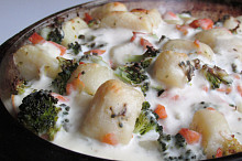 Zapečené jáhlové noky s brokolicí, lososem a ricottou