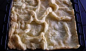 Krok 3: Těsto rozdělíme a ihned rozetřeme do slabé vrstvy na 2 suché plechy, nebo vyložené pečicím papírem (ideálně to jde na pečicí podložky).