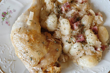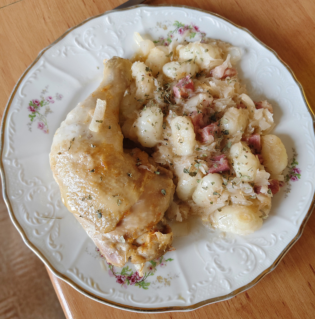 Kuřecí stehna na cibulovo-slaninovém zelí