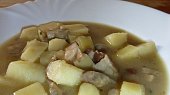 Krok 2: Pak přidáme na kostičky nakrájené brambory, osolíme, promícháme a po chvilce zalijeme vývarem. Vaříme do té doby, dokud nebudou brambory poloměkké.