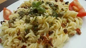 těstoviny se sušenými rajčaty a bazalkou,