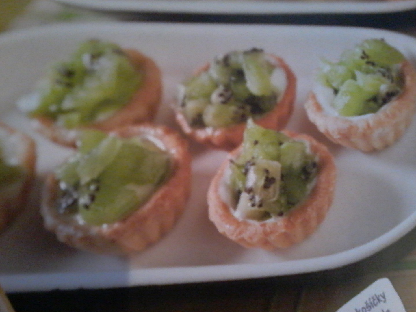 Krok 6: Smetanu ochutíme lžící cukru a naplníme s ní košíčky. Na smetanu dáme kiwi a zalijeme trochou želatiny.