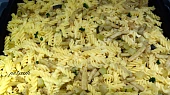 Krok 1: Cibuli nadrobno nakrájíme a osmažíme na oleji dozlatova. Cuketu očistíme a nakrájíme na kostky, fazolky nakrájíme na 3-4 cm dlouhé kousky. Cuketu, fazolky a orestovanou cibulku dáme do velké mísy, osolíme, opepříme, zasypeme kořením a důkladně rukama promícháme, aby se vše obalilo. Přendáme na plech a pečeme při 180 °C asi 30 minut. Mezitím si uvaříme těstoviny podle návodu na obalu.